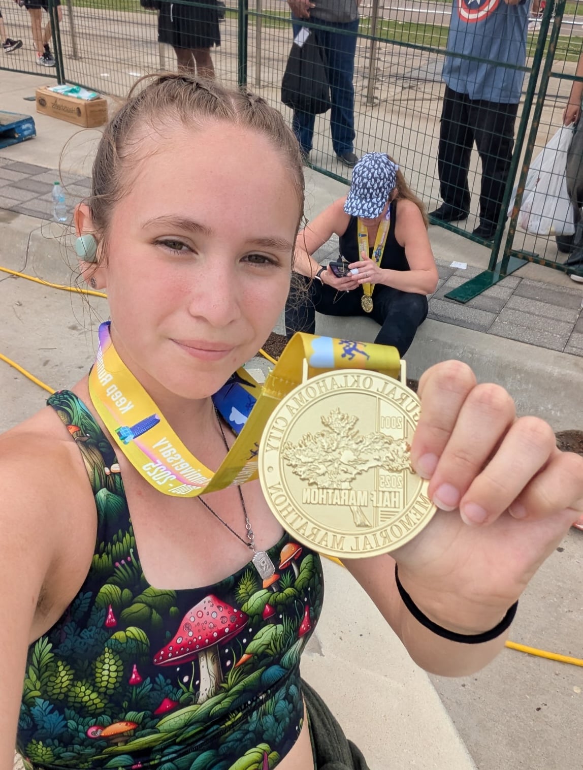 Sophia: I think two accomplishments that are the same amount of memorable for me are when I placed my freshman year at the Riverside Indian School cross country meet, even though it’s one of the hardest courses, and this past spring I ran the OKC Run to Remember Half Marathon and finished in under three hours.